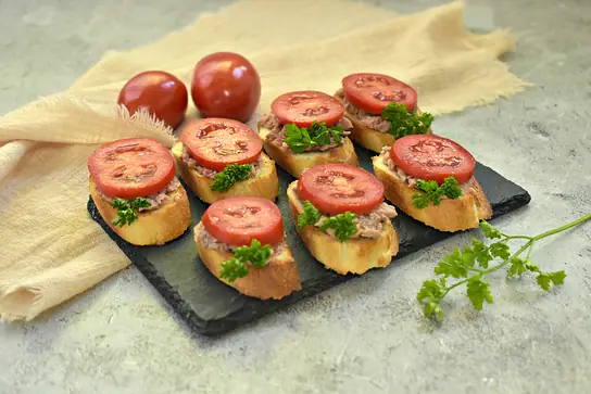 Бутерброды с печенью трески и сочными помидорами ? это не просто закуска, а настоящая находка для любого застолья. Эта легкая, но питательная закуска идеально впишется как в праздничное меню, так и в повседневное. Печень трески, получившая признание за свои полезные свойства, богата Омега-3, витаминами и обладает нежной текстурой, которая делает каждый кусочек истинным кулинарным наслаждением.