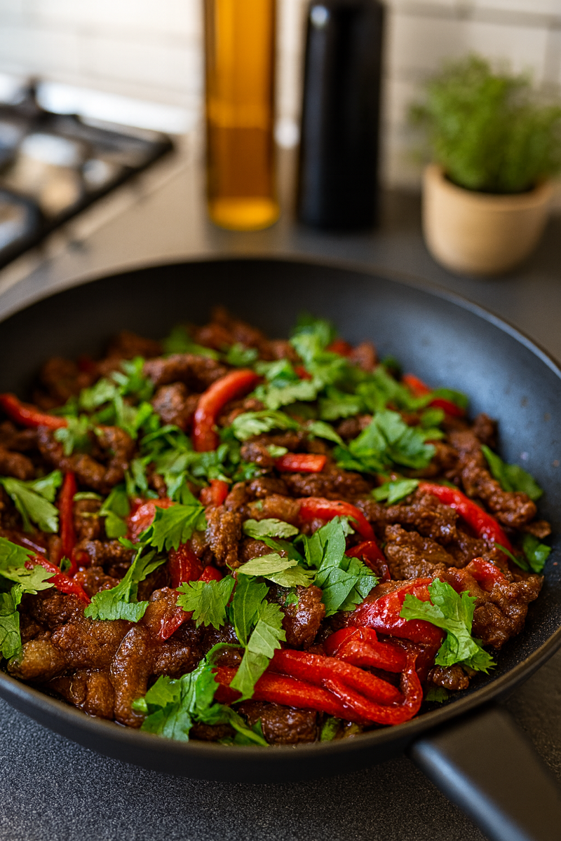 При подаче обильно украсьте блюдо измельченной кинзой или петрушкой. Предложите к нему рассыпчатый белый рис или лапшу соба/удон для создания полноценного восточного ужина.
