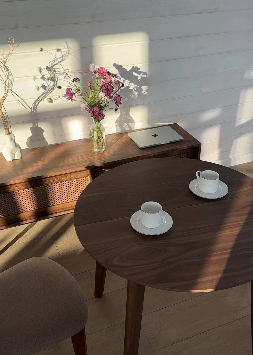 Не забудьте про оформление стола! Новый стол из скандинавского ореха добавит нотку современного стиля. Накройте его красивой скатертью, расставьте уютные свечи и посуду, которая подчеркивает атмосферу вашей встречи. Такой стол станет центром притяжения для друзей и родных.