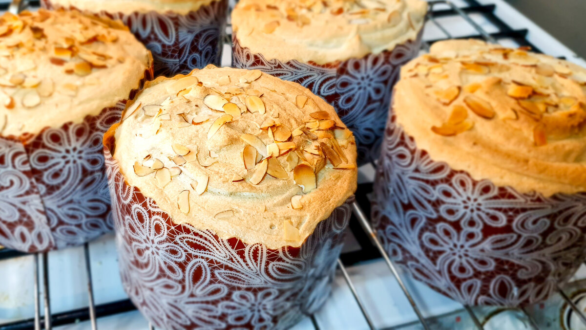 После этого куличи остывают при комнатной температуре. Они станут сладкими, плотными и ароматными, став настоящим украшением вашего стола на Пасху!