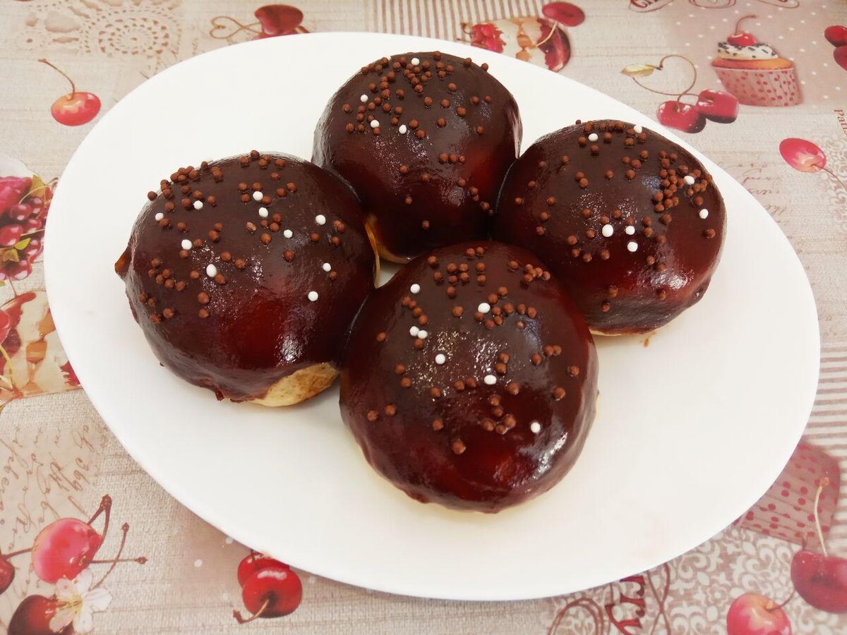 Эти булочки удивительно легкие и мягкие, а шоколадная глазурь придаёт им не только красивый вид, но и восхитительный вкус. Приготовление не займёт много времени, а главные ингредиенты легко найти в любом магазине.