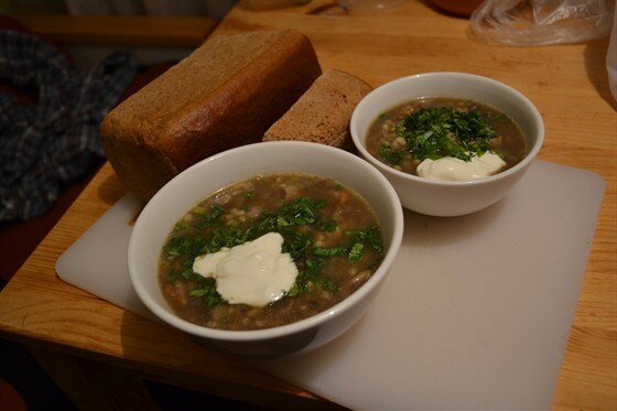 На разогретой сковороде с добавлением сливочного или оливкового масла следует обжарить мелко нарезанный лук. Когда он станет мягким, введите туда нарезанные шампиньоны и жарьте, пока они не выпустят жидкость и она испарится. Затем добавьте мелко нарезанный сельдерей и готовьте ещё 1-2 минуты, постоянно помешивая.Теперь пришло время добавить измельчённый чеснок и белую часть лука-порея, тщательно перемешать и жарить ещё пару минут.После этого введите в сковороду овощи и грибы, заливая их куриным бульоном (или водой) из расчёта 1,5 литра. Всыпьте готовую перловую крупу, посолите и варите примерно 20 минут, периодически помешивая.Готовый суп снимите с огня, добавьте мелко нарезанную петрушку, поперчите и подавайте с ложкой сметаны или сливок.Наслаждайтесь ароматным и питательным супом, который идеально подойдёт для уютного ужина!