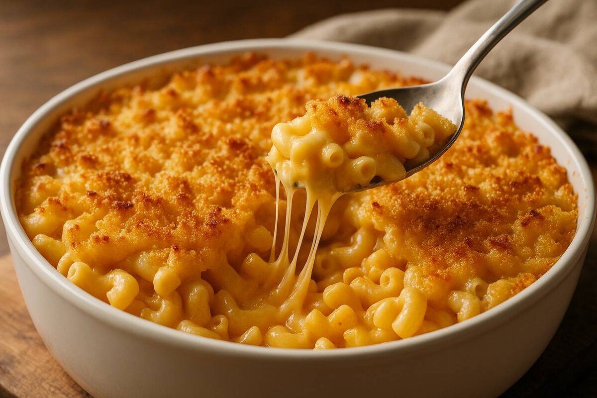 Завершение — важный момент. Дать блюду постоять пять минут — это ключ к успеху: корочка хрустит, а сыр внутри продолжает тянуться. Секрет идеального мак-н-чиза раскрыт — вперед к гастрономическим экспериментам!