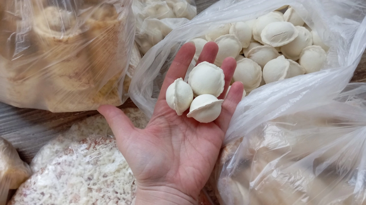 - Плюсы: Начинка приятная — сочная и без нежелательных жил и хрящей. Тесто мягкое и не слипается в процессе варки. Мясной вкус яркий, лук и специи почувствуются даже без соуса. И, конечно, цена очень привлекательная.