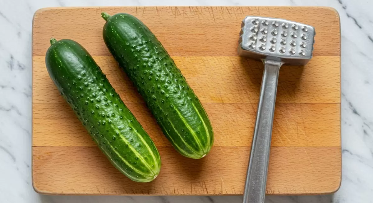 1. Начните с огурцов: слегка постучите по ним, чтобы они «проснулись». Это поможет им лучше впитать маринад. Разрежьте огурчики на кусочки толщиной 3-4 см.