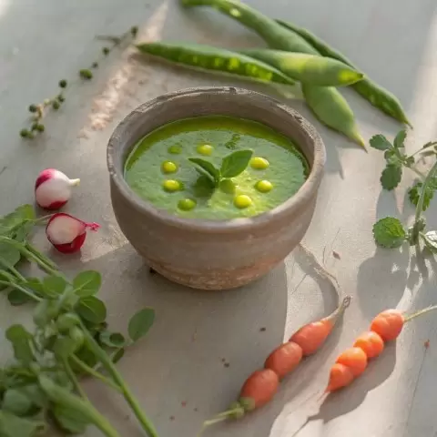 В этом сезоне радушно встречайте весну, ведь с ней приходит изобилие свежих овощей и фруктов! В центре внимания — горошек, который представляет собой не только вкусный, но и питательный ингредиент для разнообразия вегетарианского меню. Он полон витаминов и растительного белка, что делает его идеальным выбором для легких и полезных блюд.