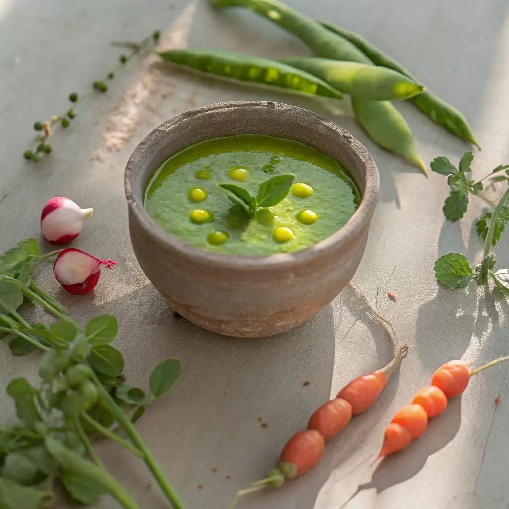 Идеальное начало весеннего обеда — суп-пюре из зеленого горошка. Приготовление включает всего несколько простых шагов: