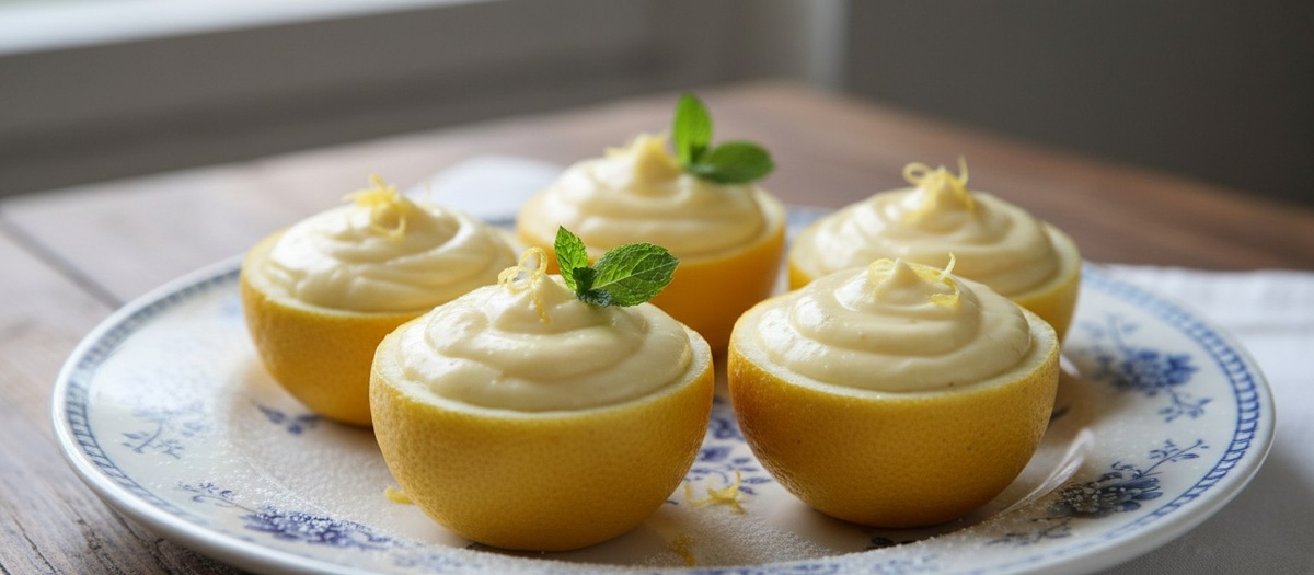 На самом финальном этапе извлечь мякоть из лимонов, а получившуюся сырную массу аккуратно залить в половинки лимонов. Получившиеся десерты отправить в холодильник на ночь, чтобы они хорошо застыли.