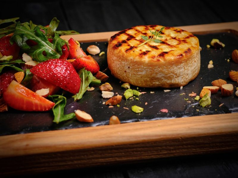 Запечённый камамбер — это не просто сыр, это гастрономический шедевр, который завоевал сердца гурманов во всем мире. Когда этот нежный сыр соединяется с ароматной печеной клубникой, обожжённой медом и свежим розмарином, получается аппетитное блюдо, которое прекрасно подойдёт как для романтического вечера, так и для шумной вечеринки с друзьями. Элегантное сочетание сладости и нежности оставляет яркое впечатление.