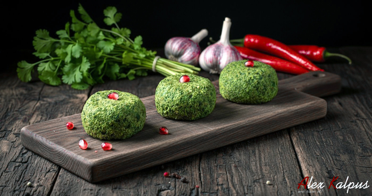 - Этап приготовления: Измельчённые маринованные листья смешивают с толчёным чесноком, грецкими орехами и специями, формируют лепешки и подают на стол, иногда украшая гранатовыми зернами.