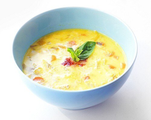 Этот суп можно подавать как горячим, так и теплым, дополнив его свежими зелеными травами для более яркого вкуса.