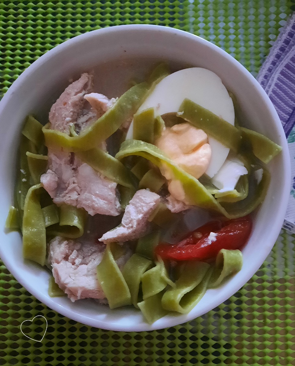 3. После этого в уже кипящий бульон опускается лапша, которая варится до готовности, примерно 7-9 минут. Используйте лапшу с добавлением шпината, чтобы придать блюду яркий цвет и дополнительный вкус.