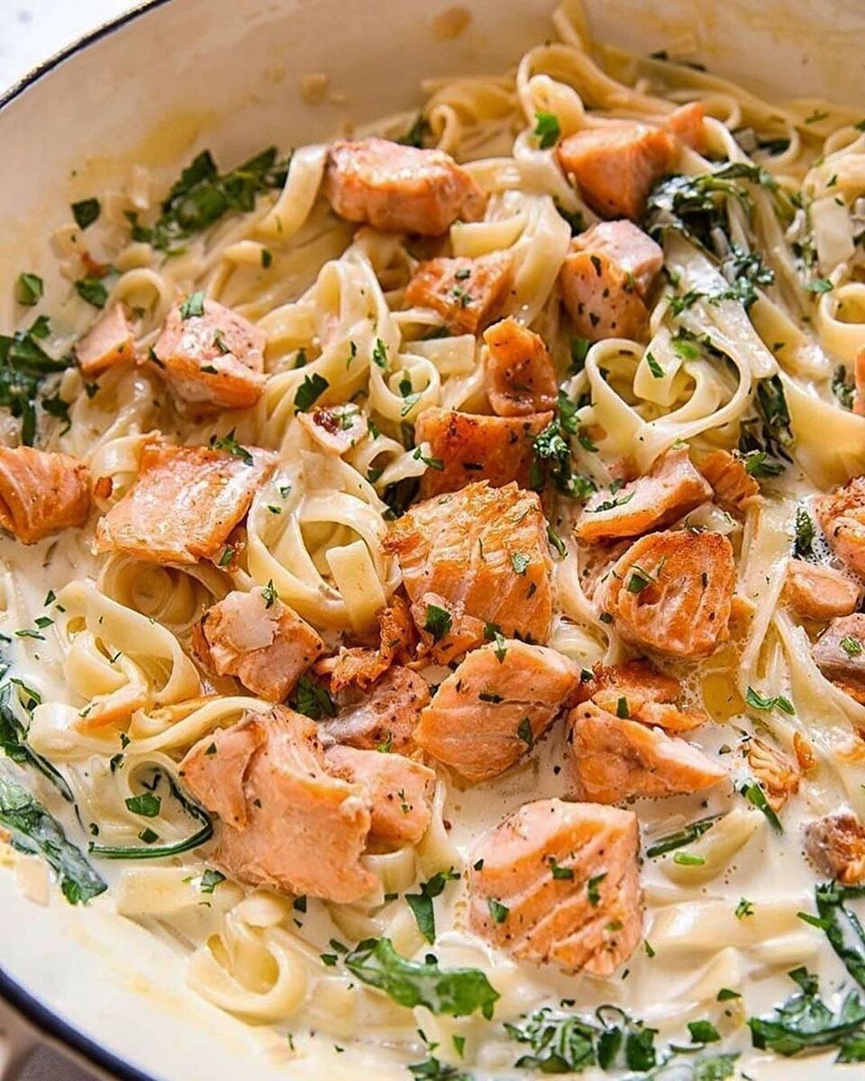 Нежная паста с форелью и сливочным соусом для романтического ужина