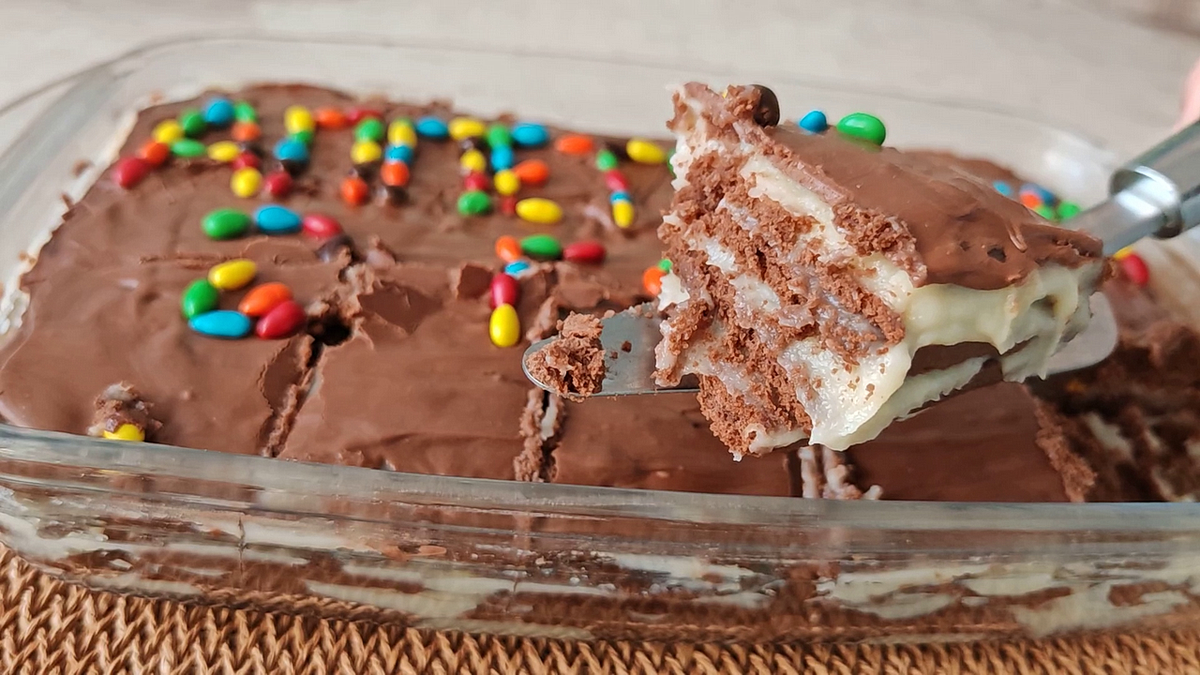 Основа этого восхитительного десерта — привычное шоколадное печенье, а крем готовится из доступных продуктов. Ничего сложного! Дети легко с этим справятся, ведь процесс настолько интуитивен.