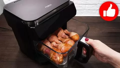 Когда курица замаринуется, необходимо выложить ножки на нижнюю решетку аэрогриля. Присутствие масла в данном случае не требуется. Установка режима «Куриная голень 2 вид корочки» или «Мультиповар 190°C» поможет достичь идеальной корочки за 30 минут. При этом не забудьте перевернуть курицу за 5-7 минут до окончания, чтобы добиться равномерной поджаренности.