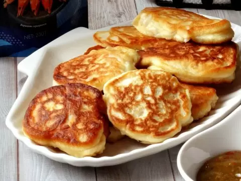 На раскалённой сковороде налить растительное масло тонким слоем и выкладывать тесто столовой ложкой. Жарить до золотистой корочки с одной стороны, затем перевернуть и готовить до полной готовности.