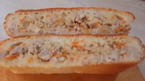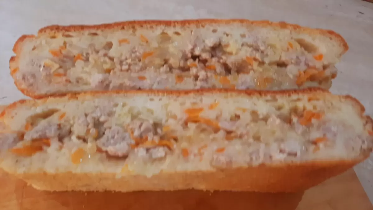 Для теста берётся кефир комнатной температуры, к которому добавляются яйцо, растительное масло, щепотка соли, сахар (по желанию) и сода. После этого постепенно вводится просеянная мука — до получения однородного состояния. Форму для выпекания (размером 22 на 16 см) смазывают сливочным маслом, а затем выливают половину теста.