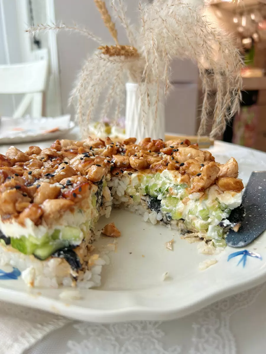 Любители кулинарии, особенно восточной, должны обратить внимание на невероятное сочетание традиционного японского и современного подхода к сервировке. Суши-торт с курицей терияки предлагает уникальный опыт для гурманов и просто любителей вкусной еды.