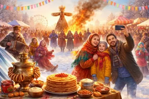 Масленица также стала заметной в цифровом пространстве, где люди делятся красивыми фото с блинами и самоварами на фоне народных костюмов.