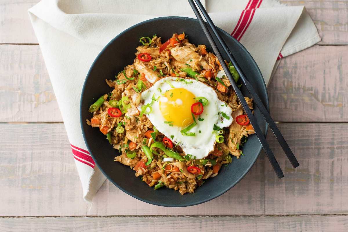 Рис в нём чаще всего используется вчерашний, потому что свежеприготовленный рис слишком влажный и не подходит для достижения идеальной текстуры. Использование вчерашнего риса позволяет наполнить блюдо особым характером без страха перед повторением. В нём нет строгих правил, только принципы, которыми следует руководствоваться.