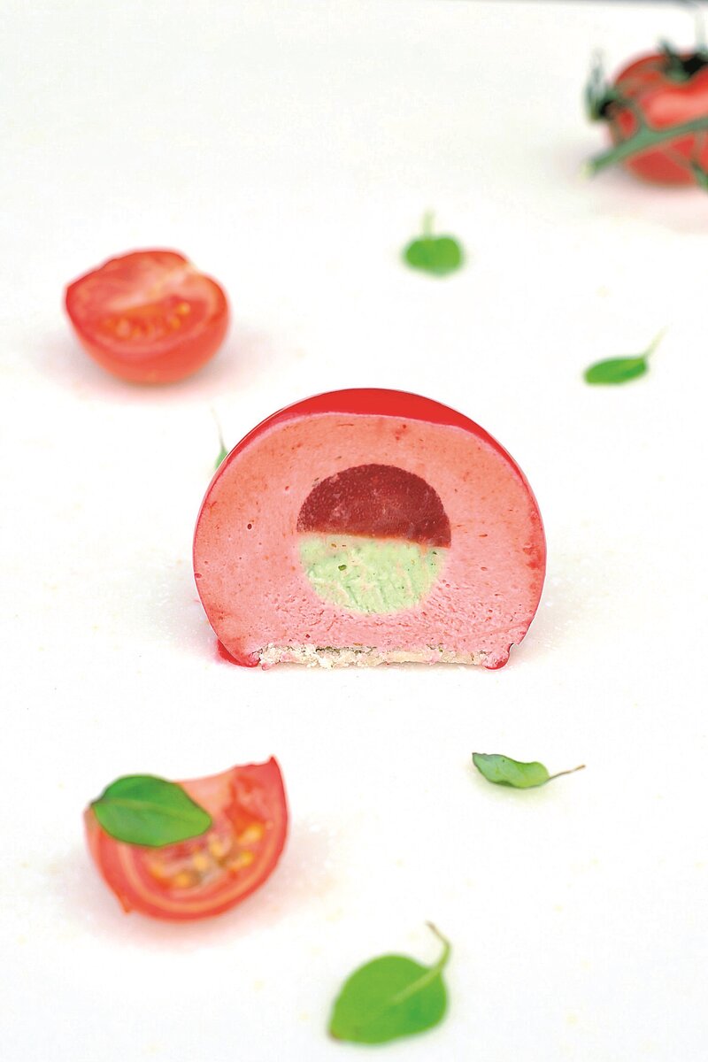 Этот оригинальный десерт сочетает в себе неожиданное, но удивительно гармоничное сочетание клубники, томата и базилика. Рецепт разработан Анной Аксеновой и представлен в книге «Муссовые торты. Легче легкого!». Порадуйте себя и своих близких этим экстравагантным угощением.